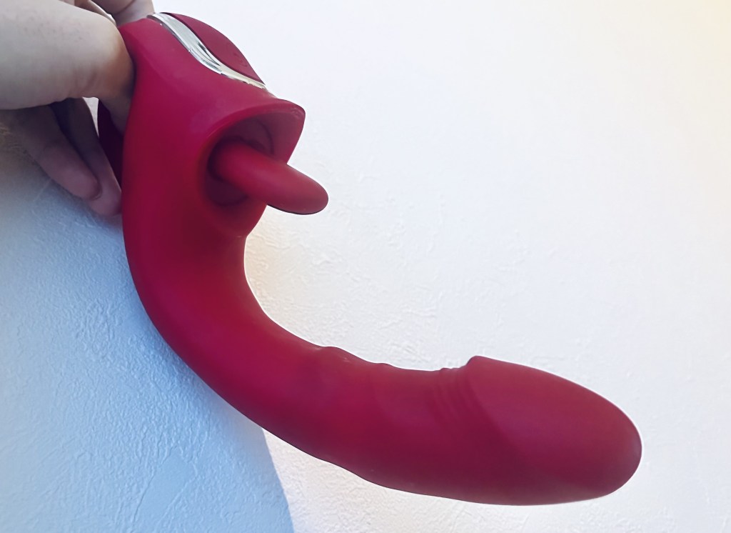 ペニスのピストン運動は7パターン。こちらも温熱機能と同じく先端のみピストンするようです。挿入したので舌もずいぶんクリトリスに当てやすくなりました。